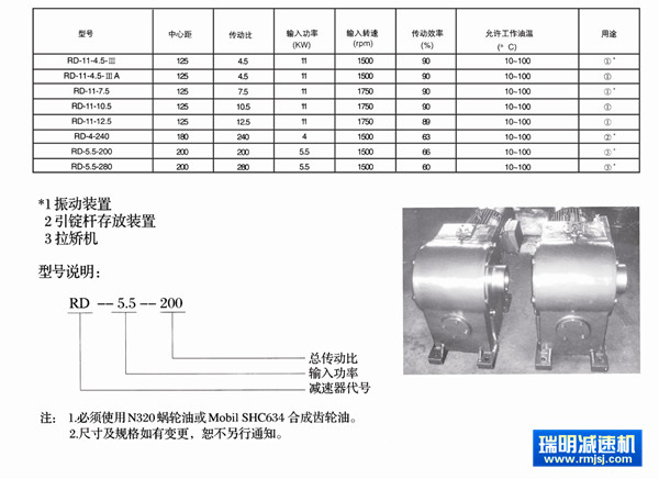 瑞明公司生產(chǎn)的RD系列平面二次包絡(luò)環(huán)面蝸桿減速機為齒輪傳動與蝸桿傳動復(fù)合而成的二級減速機,蝸桿副是采用專業(yè)二次包絡(luò)技術(shù)而生產(chǎn)的,其承載能力大、結(jié)構(gòu)緊湊、合理、體積小,廣泛適用于冶金軋鋼機組中拉矯機,引錠桿存放裝置及振動裝置。